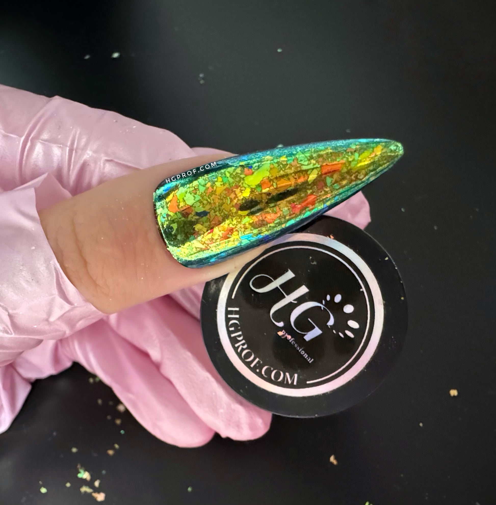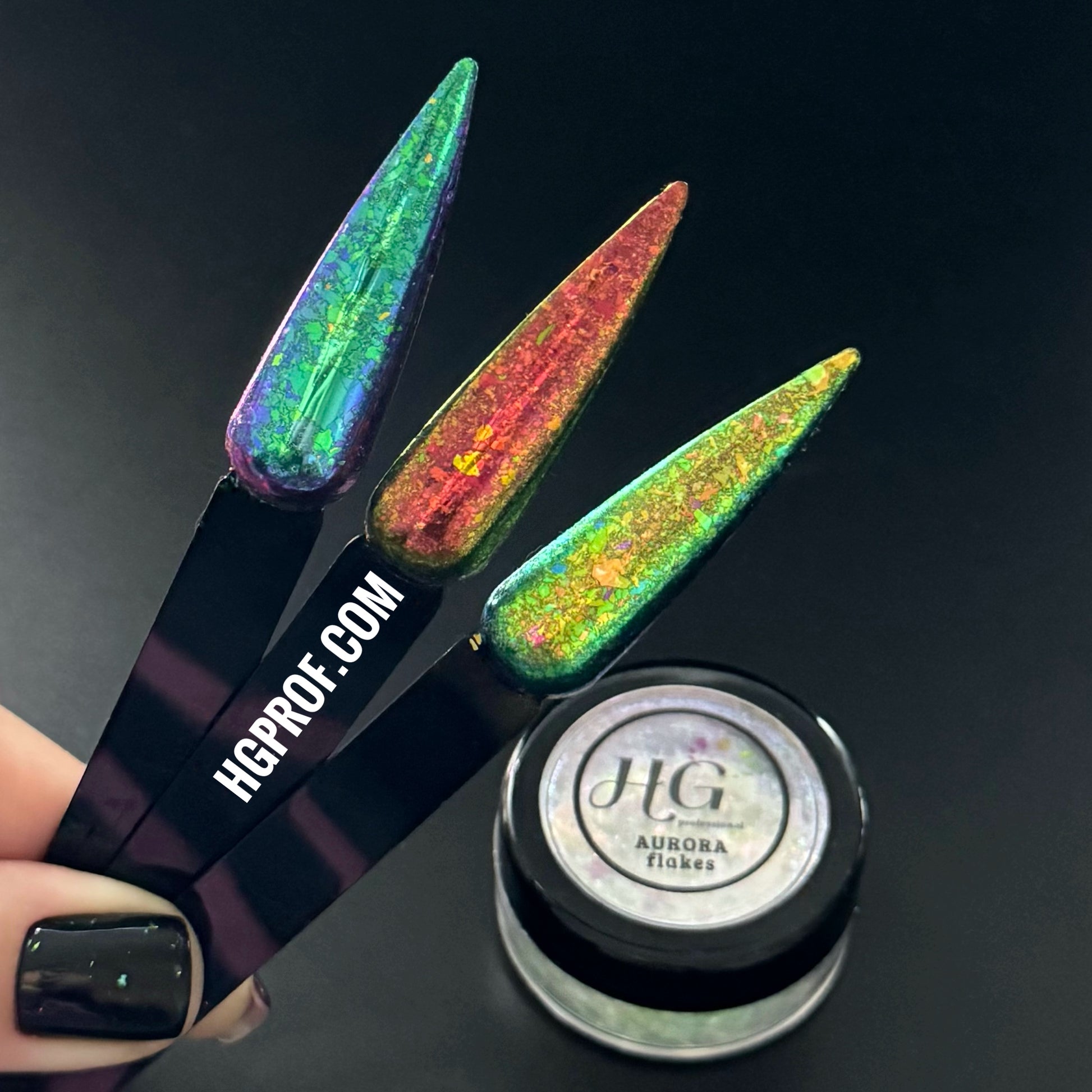Aurora Flake can be used with gel, acrylic or nail polish.
