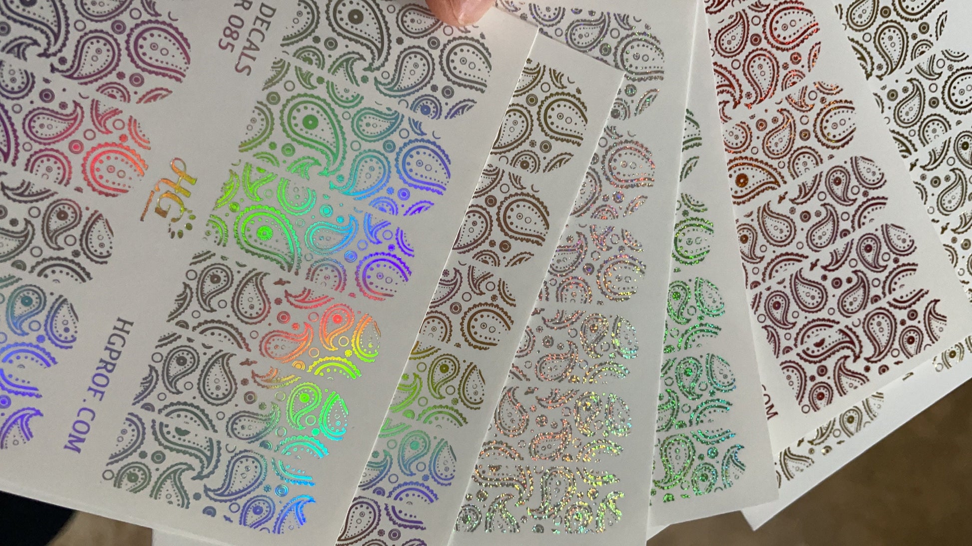 2. Water decals with a white background and foil decals - can be applied on any color.