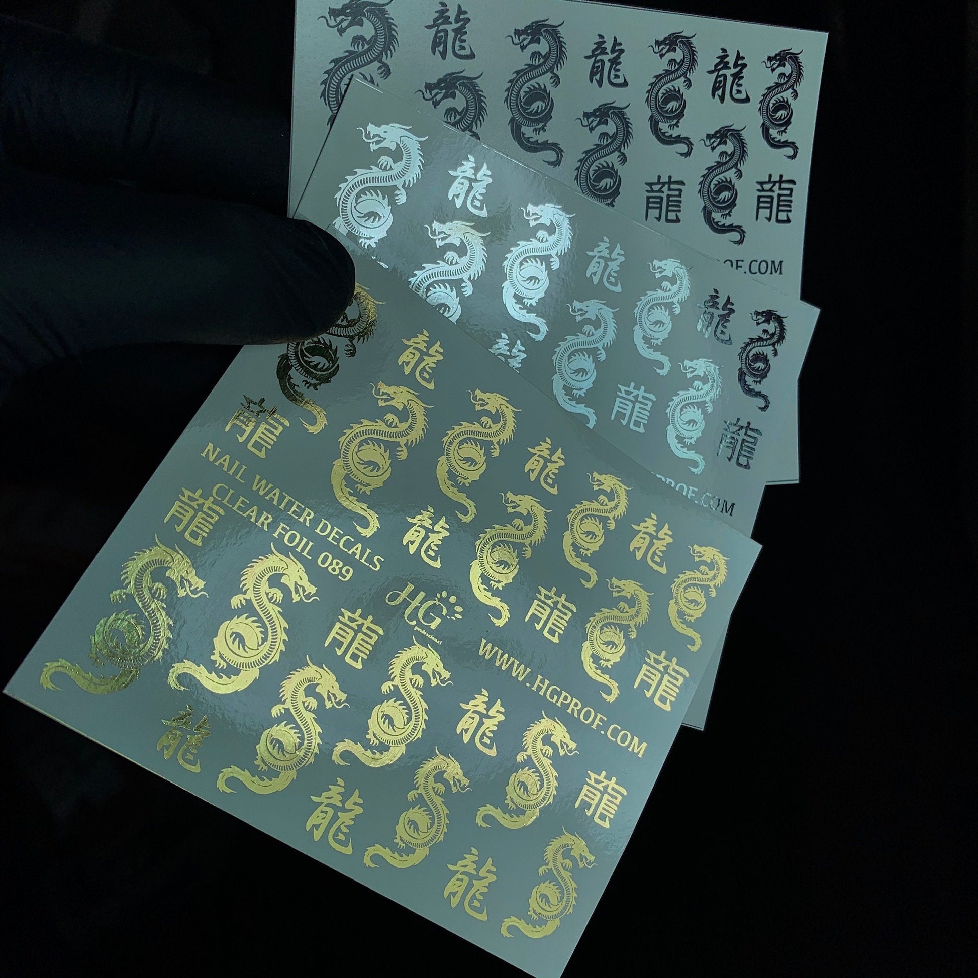 2. Water decals with a white background and foil decals - can be applied on any color.