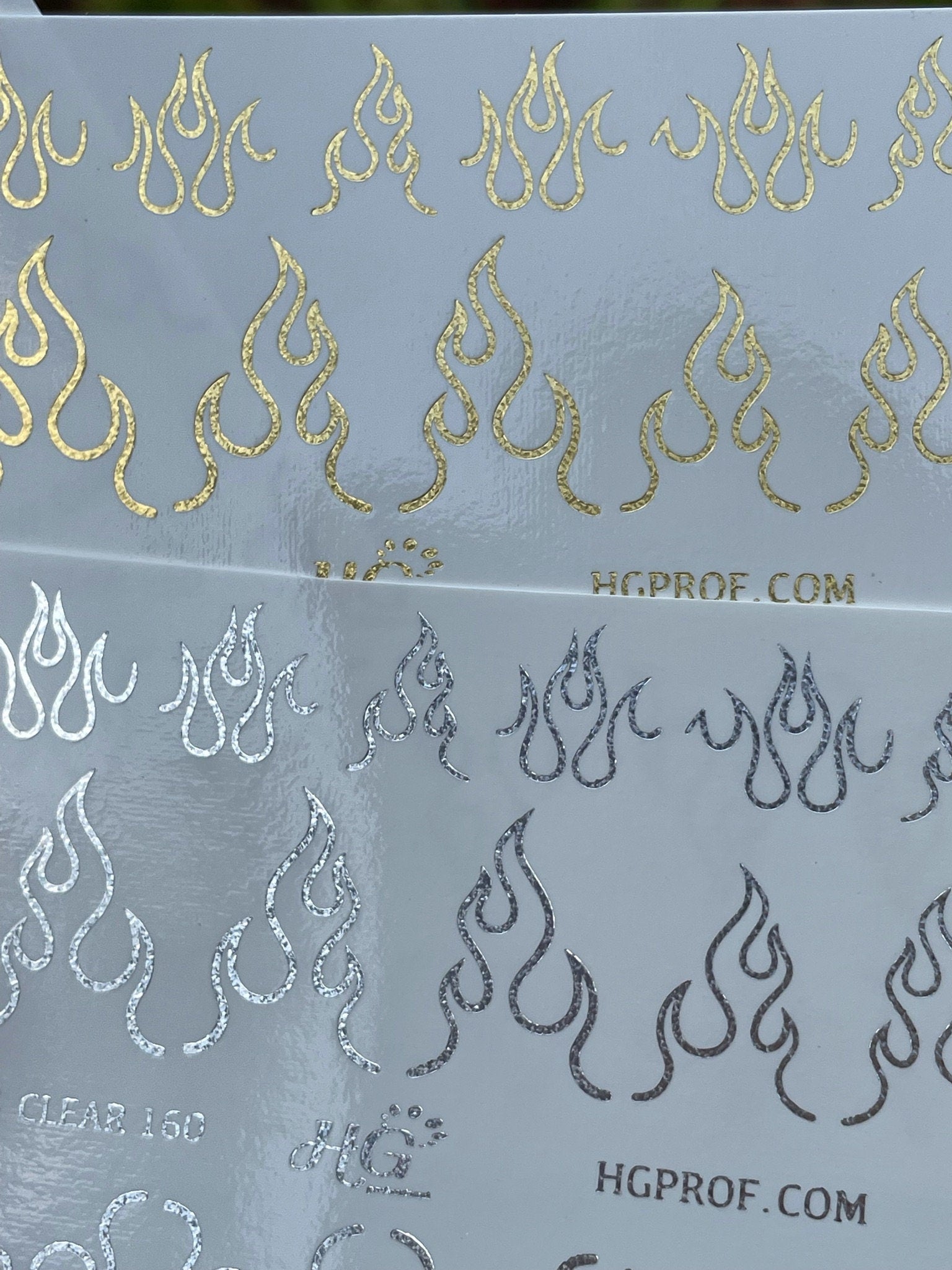 2. Water decals with a white background and foil decals - can be applied on any color.