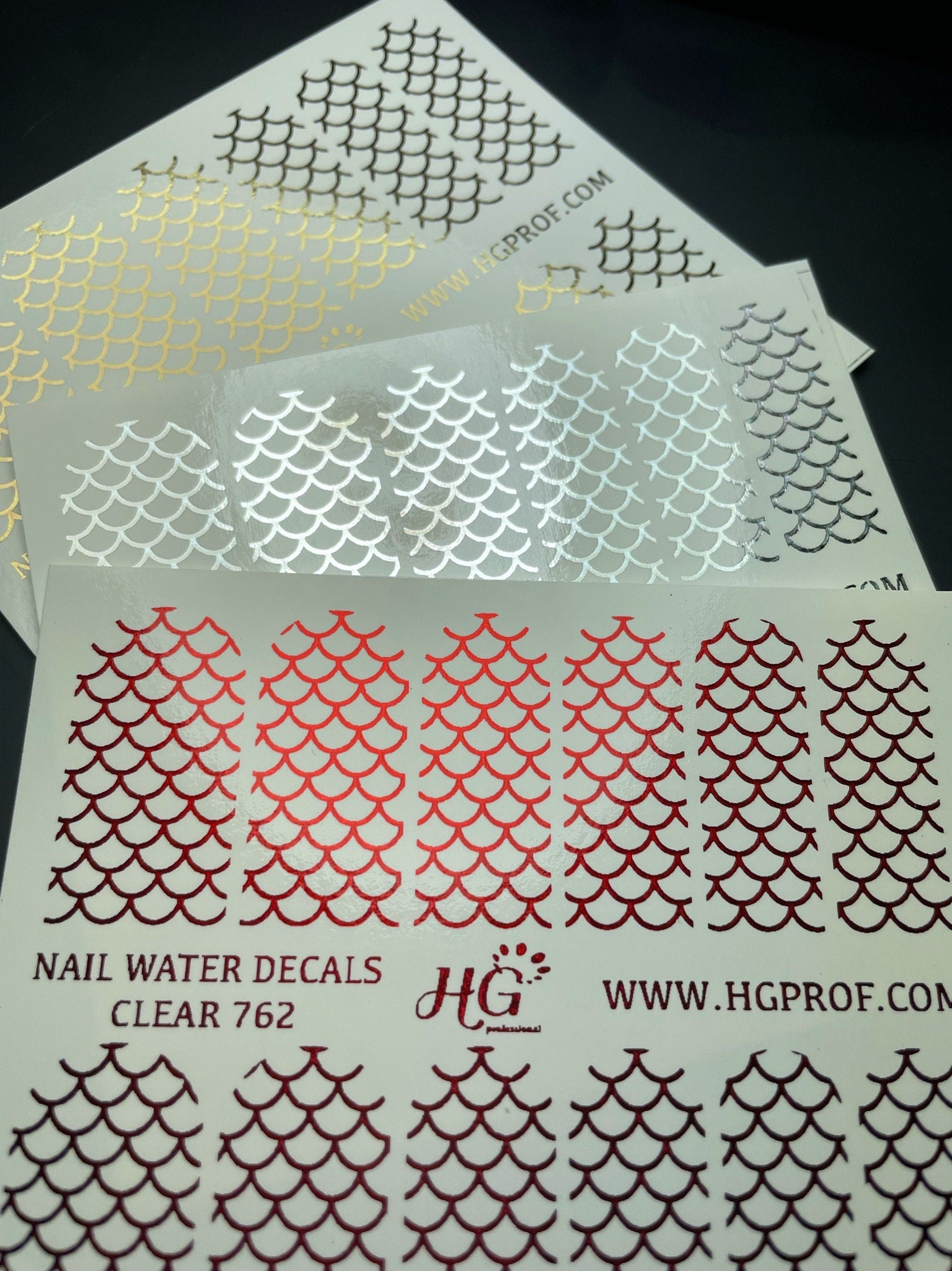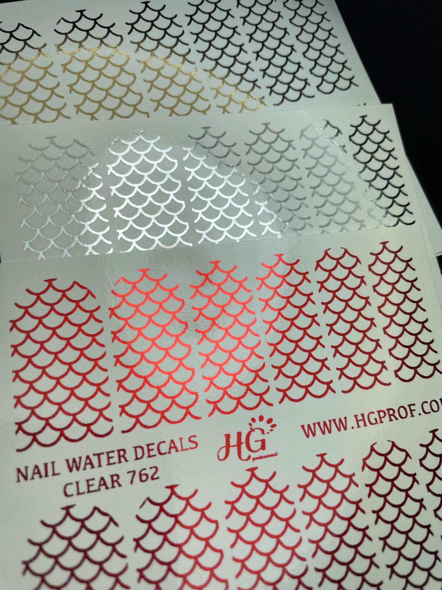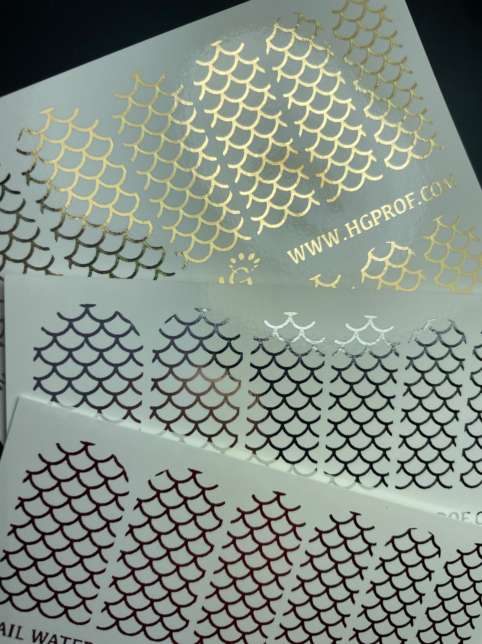2. Water decals with a white background and foil decals - can be applied on any color.